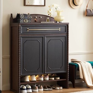 フランス無垢材靴キャビネット家庭用小型玄関収納キャビネット一体型ホームドアレトロ壁収納キャビネット