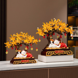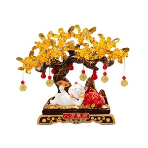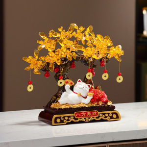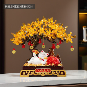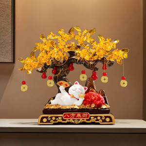 招財樹、寝ている猫の置物、高級玄関ホール、リビング、テレビ台、オフィス装飾、開店祝い