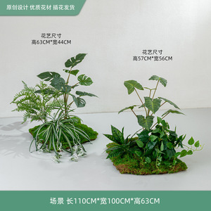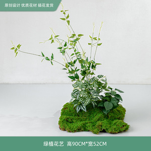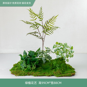模擬苔と緑の植物造園、ハイエンドの軽い豪華なマイクロランドスケープ、屋内偽植物、床置きのバイオニック装飾アレンジメント盆栽