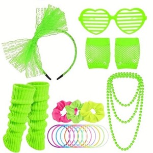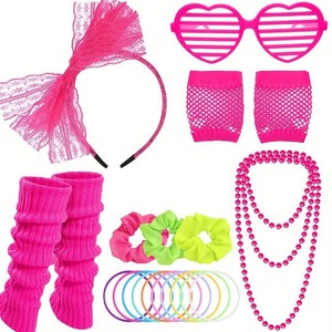D2 シリーズ ハロウィン クリスマス 1980 カラー ネオン セット カラフルなレースのヘッドバンド 網タイツ 手袋 レッグカバー