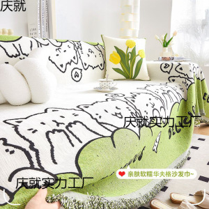 ※ 新型厚手ワッフル猫掴み防止ソファタオルフルカバー一枚式滑り止めソファマットカバーソファーカバー布