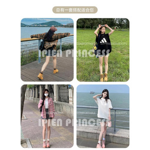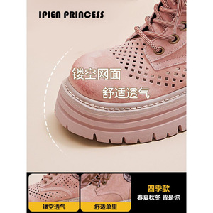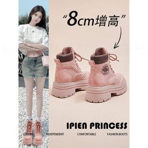 屋外のマーティンブーツの女性2025夏の新型の爆発的な爆発物の中で高くなった透かし彫りのピンクの小さい背の厚いブーツ