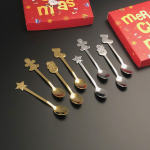 クロスボーダーステンレス食器クリスマススプーンギフトボックスデザートスプーンクリエイティブコーヒースプーンセット漫画祭りギフトボックス