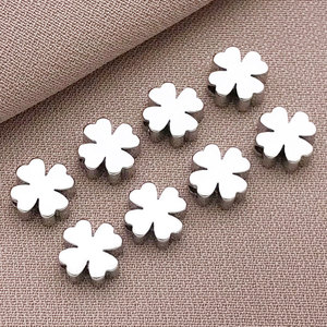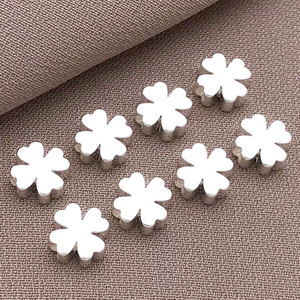 T484-6mm 銅メッキ厚いシルバーの強力な色保持四つ葉のクローバー スペーサー ビーズ-0.4g