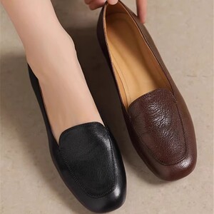 ソフトシープスキン 2025 秋冬新作本革靴女性用ローヒールスリッポン浅口シューズ通勤用小さな革靴