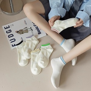 Zhuji ソックス レディース ショートソックス 夏 薄手 シンプル スタイル ホワイト スプライス ソックス 多用途 ロートップ ソリッド カラー ショート ソックス