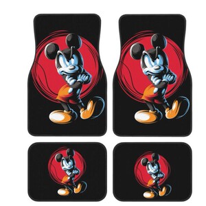 国境を越えた卸売 TEMU ユニバーサルカーマット 漫画 ミッキーメイク フットマット カーペット 4点セット 汚れにくく耐摩耗性