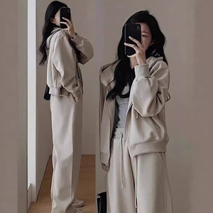 秋冬カジュアルフード付きスウェットシャツスポーツスーツレディースソルトシリーズハイエンド大きいサイズのセット年齢を減らして痩せるツーピースセット