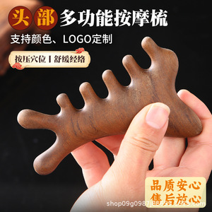 ゴールデンサンダルウッドフォーインワンマッサージコーム、経絡コーム、グリーンサンダルウッドヘッドスクレーピング、多機能頭皮マッサージコーム