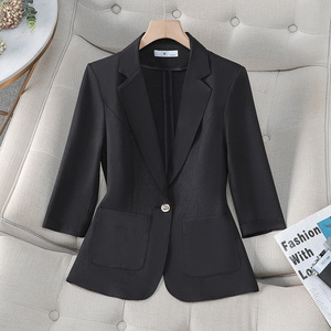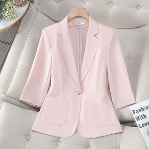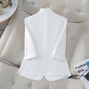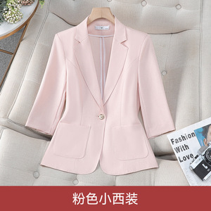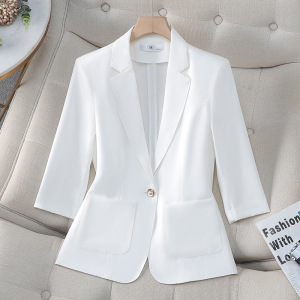 白色2025新款西装外套女夏季薄款小个子七分袖上衣休闲短款西服