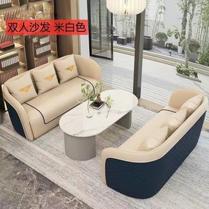 現代のシンプルなホテルの商談会の喫茶店はソファーのテーブルの椅子を接待します。