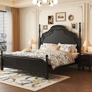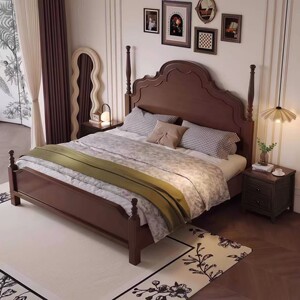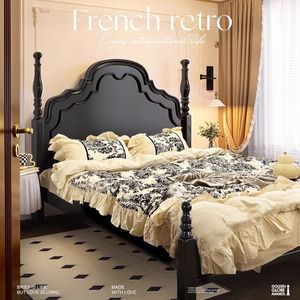 アメリカンフレンチレトロスタイルブラックアンナベッド無垢材ダブルベッドアメリカン家具モダンシンプルマスターベッドルーム大型ウェディングベッド