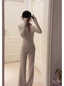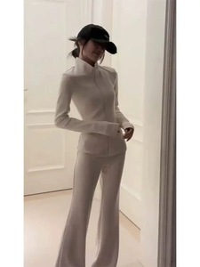 2025超火春装一整套美式复古修身立领长袖外套垂感百搭高腰微喇裤