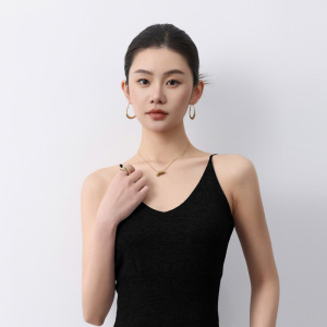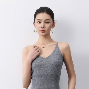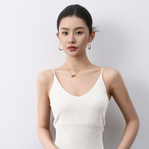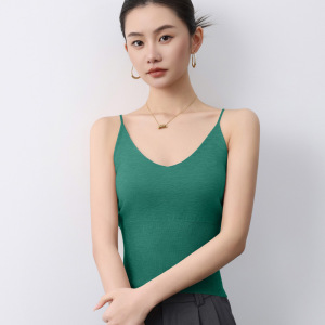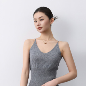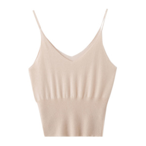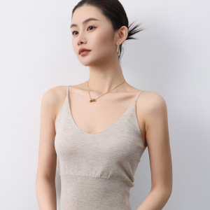 16針梳毛ウールVネックニットキャミソール25年夏新作無地スリムフィットインナートップ