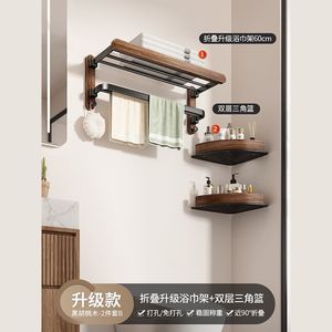 ブラックウォールナットアップグレード折りたたみバスタオルラック60CM