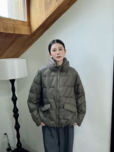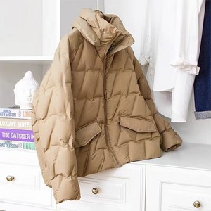 クロスボーダー秋冬新作ダブルスタンドカラーハイエンド外国風軽量ラミネートダウンジャケットレディースショートスタイルシンプルジャケット
