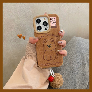 可爱西高地适用于苹果16promax手机壳iphone15/14毛球皮质13/xmax