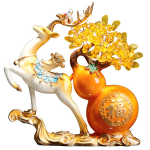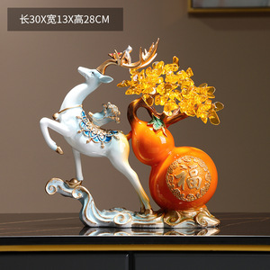 フォーチュンデコレーション、金運のひょうたんと金のなる木の置物、クリエイティブで軽くて豪華な玄関ホール、リビングルーム、テレビキャビネット、オフィスデスクトップ、鹿の装飾