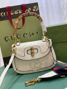 G's バンブーバッグ レディースバッグ ダブルG バンブーハンドル ロック ショルダー クロスボディ ハンドバッグ