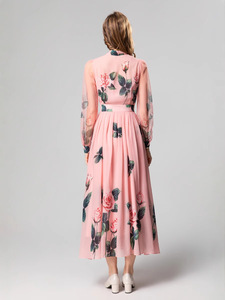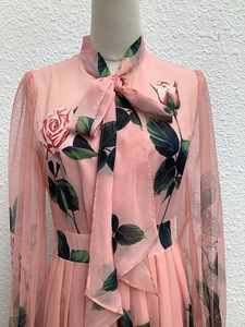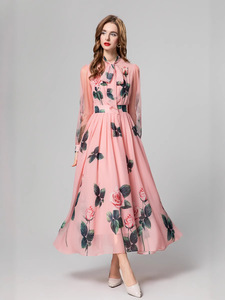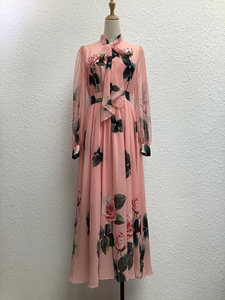 2025 春夏新作レディースヨーロッパステーションハイエンドレースアップローズエレガントシフォンロングスカートドレス