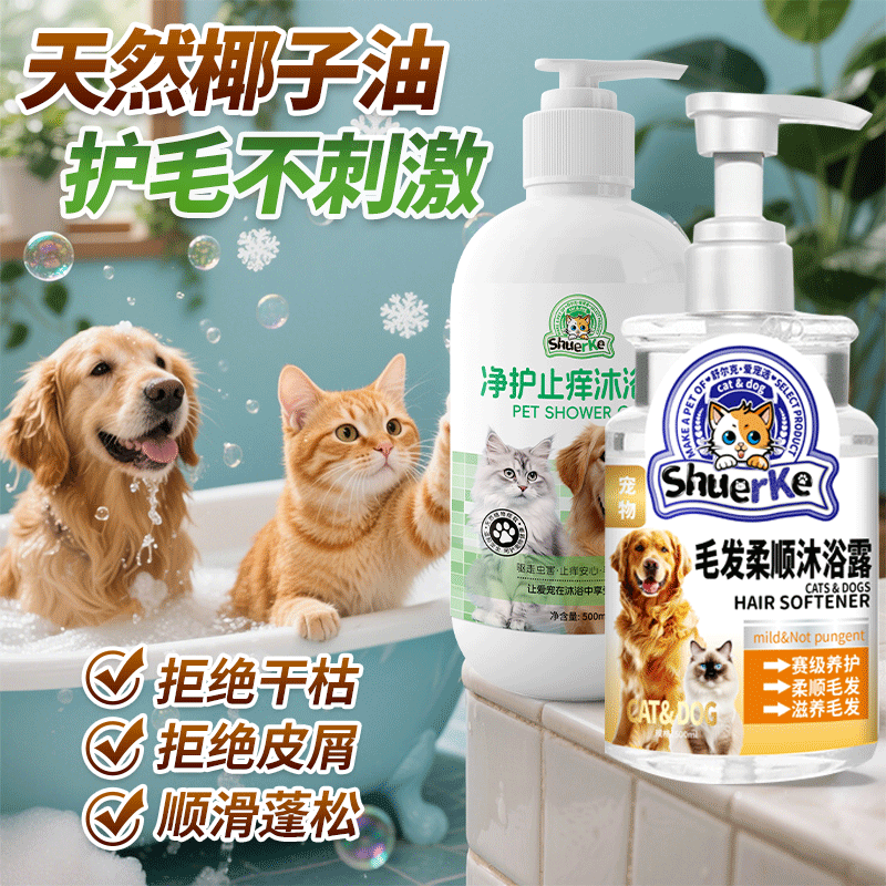 ペット用シャワージェル、抗菌防臭、香り長持ち、犬猫用除菌・かゆみ止め、天然成分
