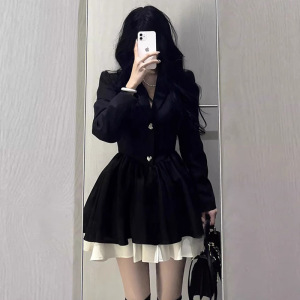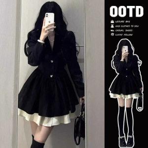 【オリジナルの作り方 + 裏地】早秋にはお姉さん風の黒いワンピースを着て、子供のお茶を休んでいます。