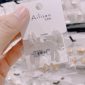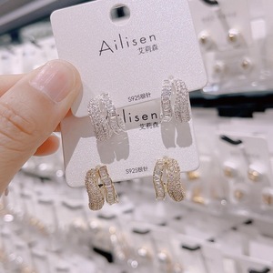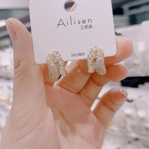アリソンファッション軽豪華重工耳飾り人工ジルコン微嵌二重波形cリングピアス925銀針女