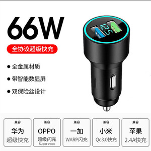 66W車載充電器一牽引三適用華為携帯電話快充40w車充電車シガレット二口