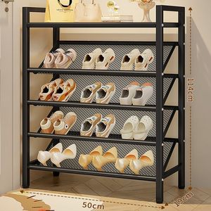 斜放式进门窄鞋架家用多层不占地入户玄关奶油风铁艺鞋子收纳鞋柜