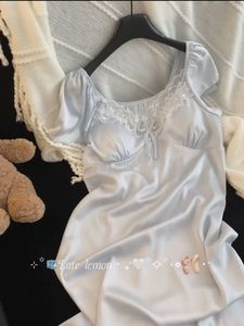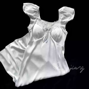 胸パッド付きパジャマ夏の女性2025の新しい氷糸の薄いストラップ半袖の甘いレースのパジャマの女性の家の服