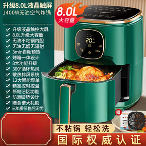 【トップLCDタッチスクリーン/グリーン8.0L】1400Wの大火力+輸入チップ+オイルフリーのノンスティックパンライナー+8つの主要なアップグレード機能