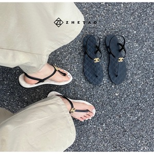 zhetao2025 春夏新作フラットソールサンダルファッショナブルな小さな香りのカラーブロックサンダルビーチカジュアルサンダル
