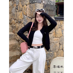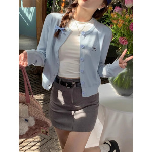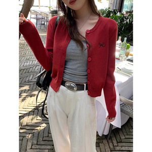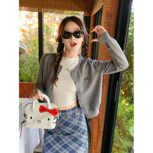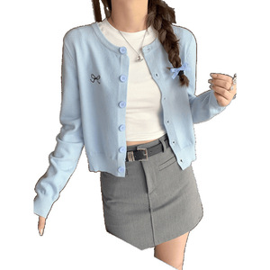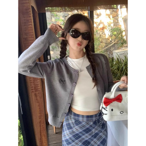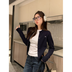 カーディガンの外は薄いタイプの2025春秋の新型の婦人服を掛けて高級感のニットの上着の秋の長袖の上着を着ます。