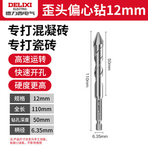 Delixi 側頭偏心ドリルビット ドライパンチング フルタイル コンクリート セメント壁 ガラス ハンドドリル 超硬延長