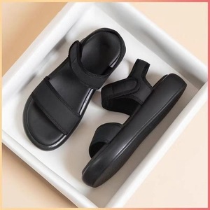 フラットサンダル女性のスポーツビーチシューズ 2025 夏新黒ソフトソールママベルクロビーチサンダル女性