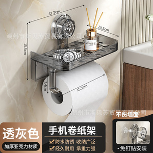 バスルームティッシュボックスパンチフリーペーパーロールホルダーアクリル吸盤トイレットペーパー収納バスルーム壁掛けティッシュボックス