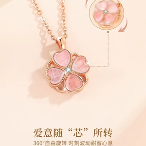 可旋转粉色幸运四叶草项链女士高级感吊坠2025年新款520情人节礼