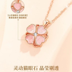 粉色可旋转四叶草项链