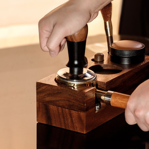 胡桃木コーヒー圧粉座圧粉器イタリア式ベース圧粉パッドハンドルホルダーバー収納棚58mm