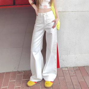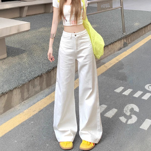 白い広脚ジーンズ女性2025春夏の新型高腰が痩せている