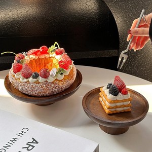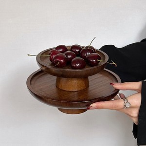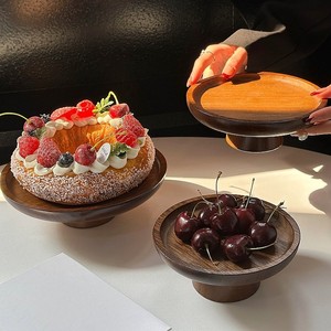 レトロな木製の背の高いフルーツプレートケーキトレイホームリビングルームスナックプレートデザートテーブルディスプレイスタンド日本のフルーツプレート