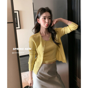 LICKYSENIOR 限量返场 意大利Olivo套装法式时尚开衫吊带两件套