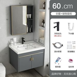 60CM (1618 ジェントルマングレー) - 洗面器 + キャビネット + 収納ミラーキャビネット付き