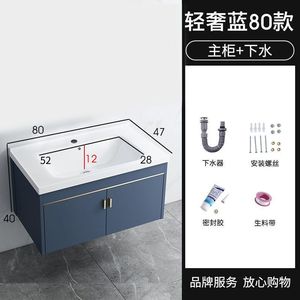 80CM (ライトラグジュアリーブルー) - 洗面器+キャビネット+蛇口付き