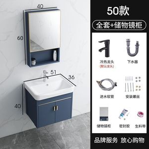 50CM (ライトラグジュアリーブルー) - 洗面器+キャビネット+収納ミラーキャビネット付き