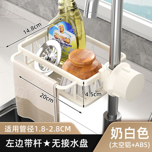 左側にロッドが付いている乳白色の水切りバスケット