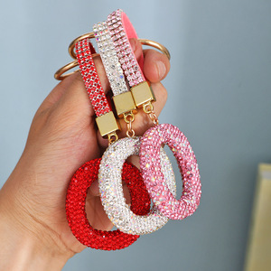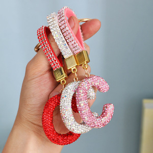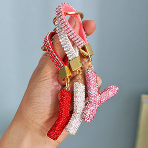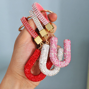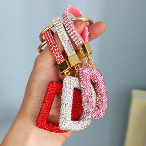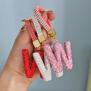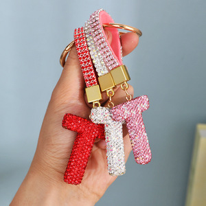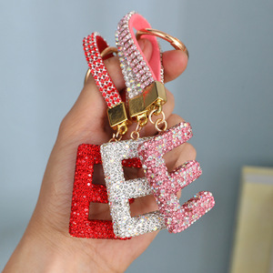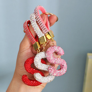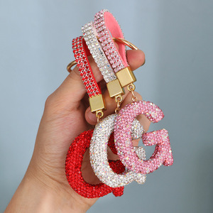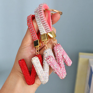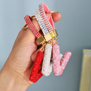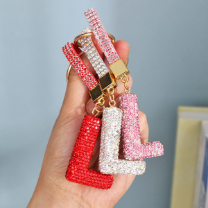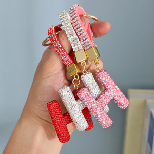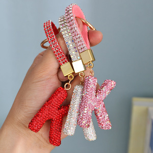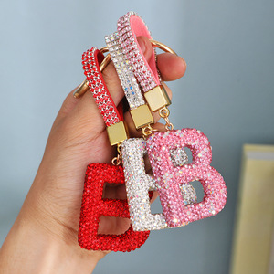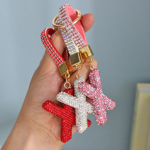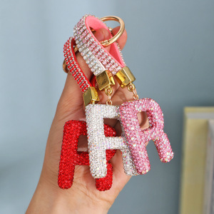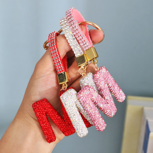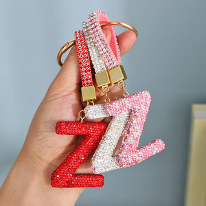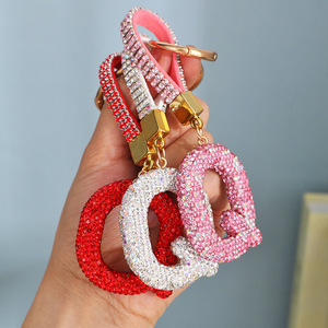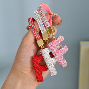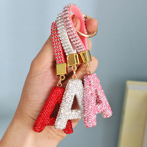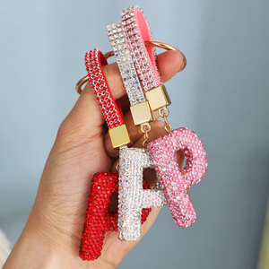 クロスボーダーフルダイヤモンド英字キーホルダーペンダントかわいいガーリーピンク文字バッグ装飾車のキーチェーン