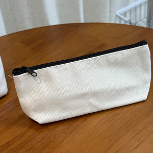 ロングジッパーキャンバスバッグポータブルシンプルな DIY 小銭入れ学生鉛筆バッグ文具バッグ無地化粧ブラシ収納