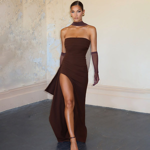 2025秋ヨーロッパとアメリカのアマゾンクロスボーダー外国貿易新しい無地ノースリーブチューブトップバックレススリットジッパードレス
