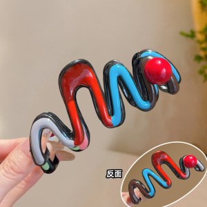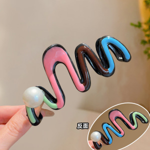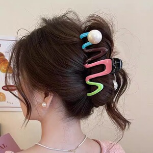 设计款彩色波浪珍珠抓夹大号鲨鱼夹发夹女时尚新款高级感夹子发饰